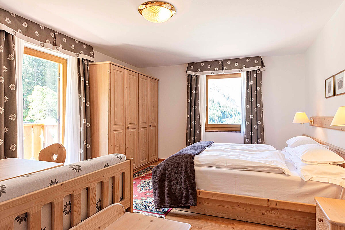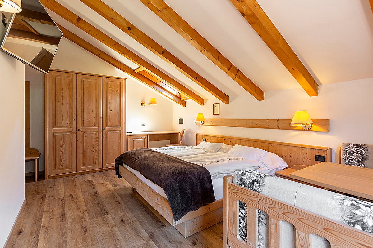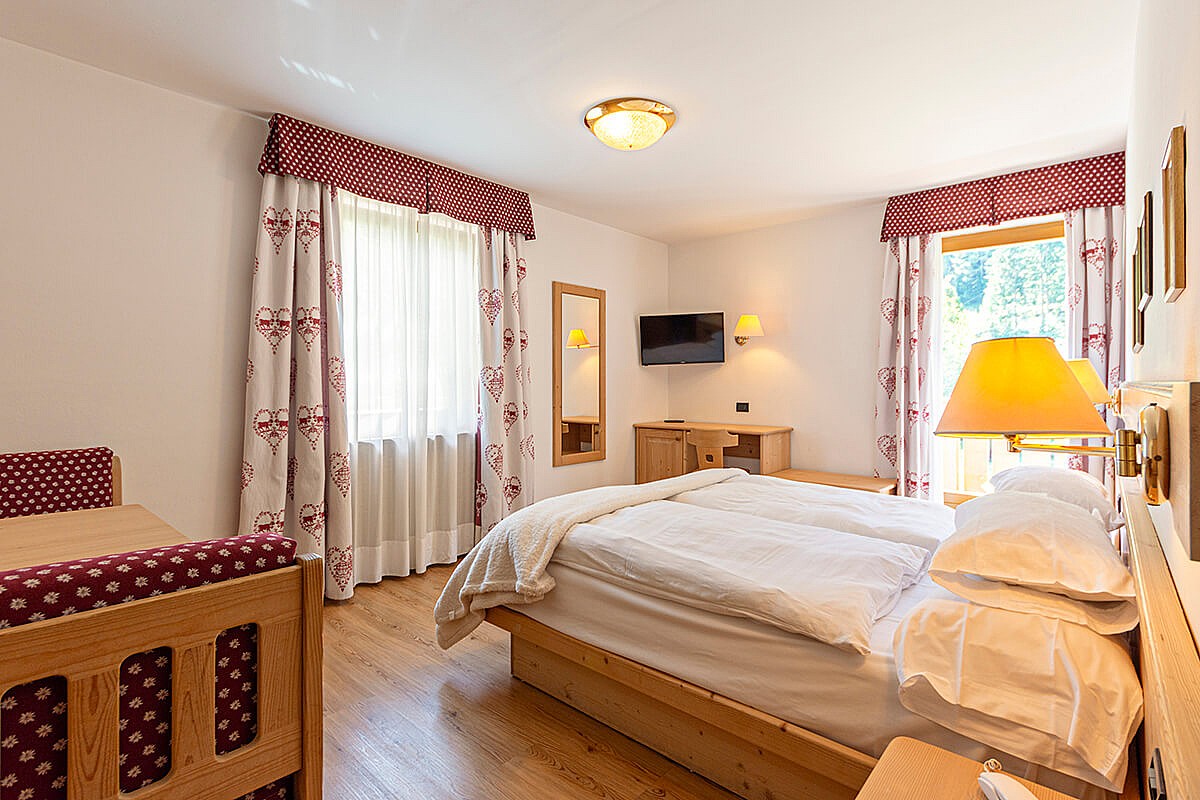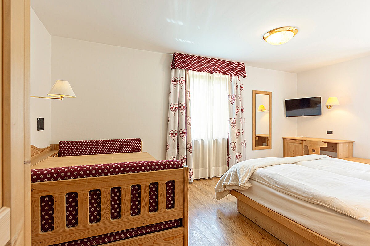 The Family Room of Hotel Malga Passerella comprises two connecting rooms, suitable for families who want to spend their holiday enjoying all the comforts.